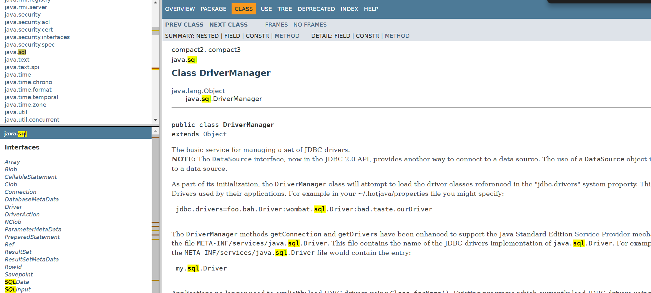 - 데이터베이스와 통신하는 방법과 인터페이스를 제공하며, 이는 JDK에서 제공하고 있다. (자바 API문서에서 확인가능)