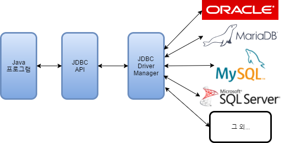 - 즉, 오라클을 사용한다면 오라클용 JDBC드라이버를, MySQL을 사용한다면 MySQL용 드라이버를 사용해야한다.