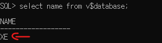 - `select name from v$database;` 작성해서 DB이름을 확인한다