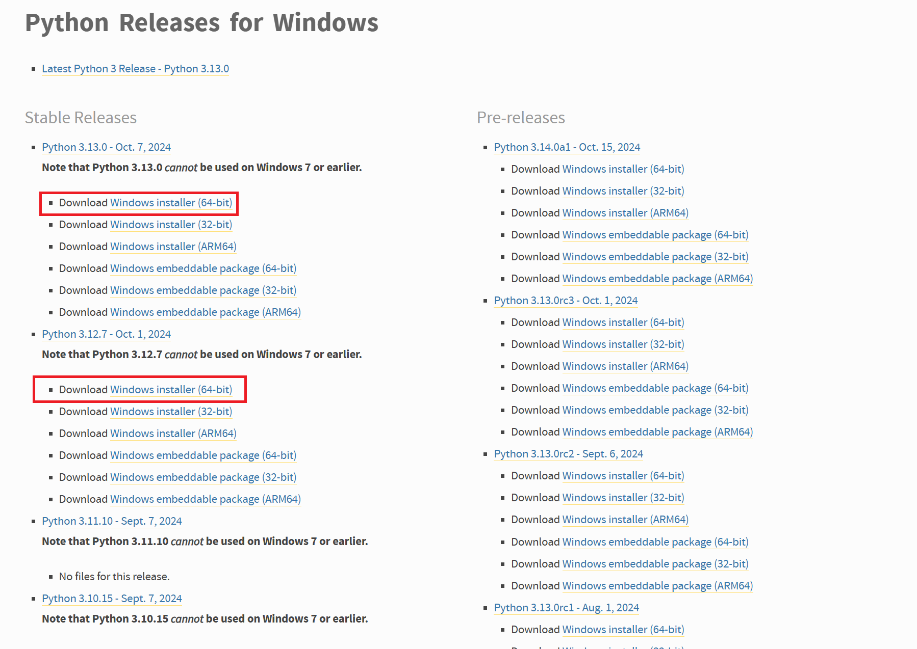 - 오른쪽 Pre-releases는 최신 버전이지만 일반적으로는 안정적인 Stable Releases를 권장한다