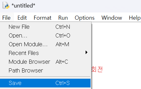 - Ctrl + S 또는 왼쪽상단 File > Save 클릭하여 원하는 파일이름 작성하고 저장