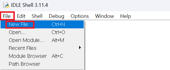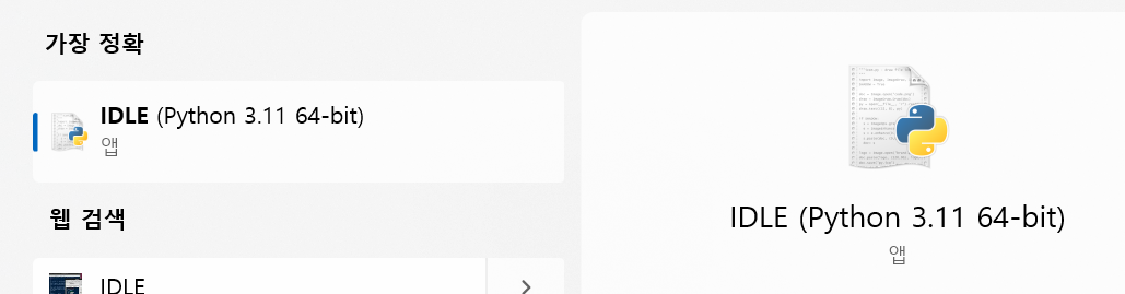 - 하단 작업표시줄 검색창에 idle 를 검색하면 뜨는 idle를 클릭해서 실행한다