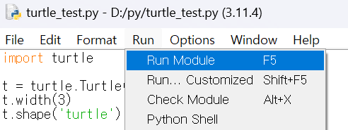 - 단축키 해당 파일에서 F5 또는 상단 Run > Run Module 클릭하면 실행된다