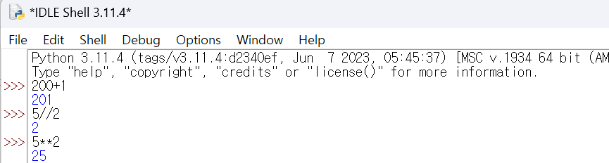 - IDLE는 파이썬 설치와 함께 기본적으로 제공되는 파이썬 내장 IDE이다